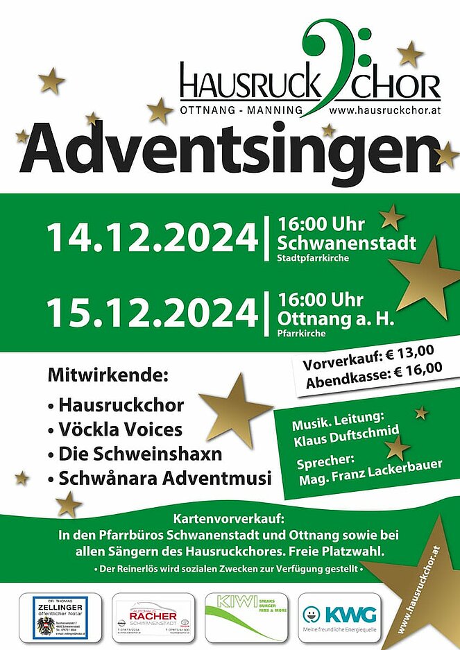 Liebe Obleute und Reiseverantwortliche, die besinnliche Zeit des Advents steht vor der Tür und wir möchten Sie und Ihre Mitglieder herzlich zu unseren Adventsingen einladen.