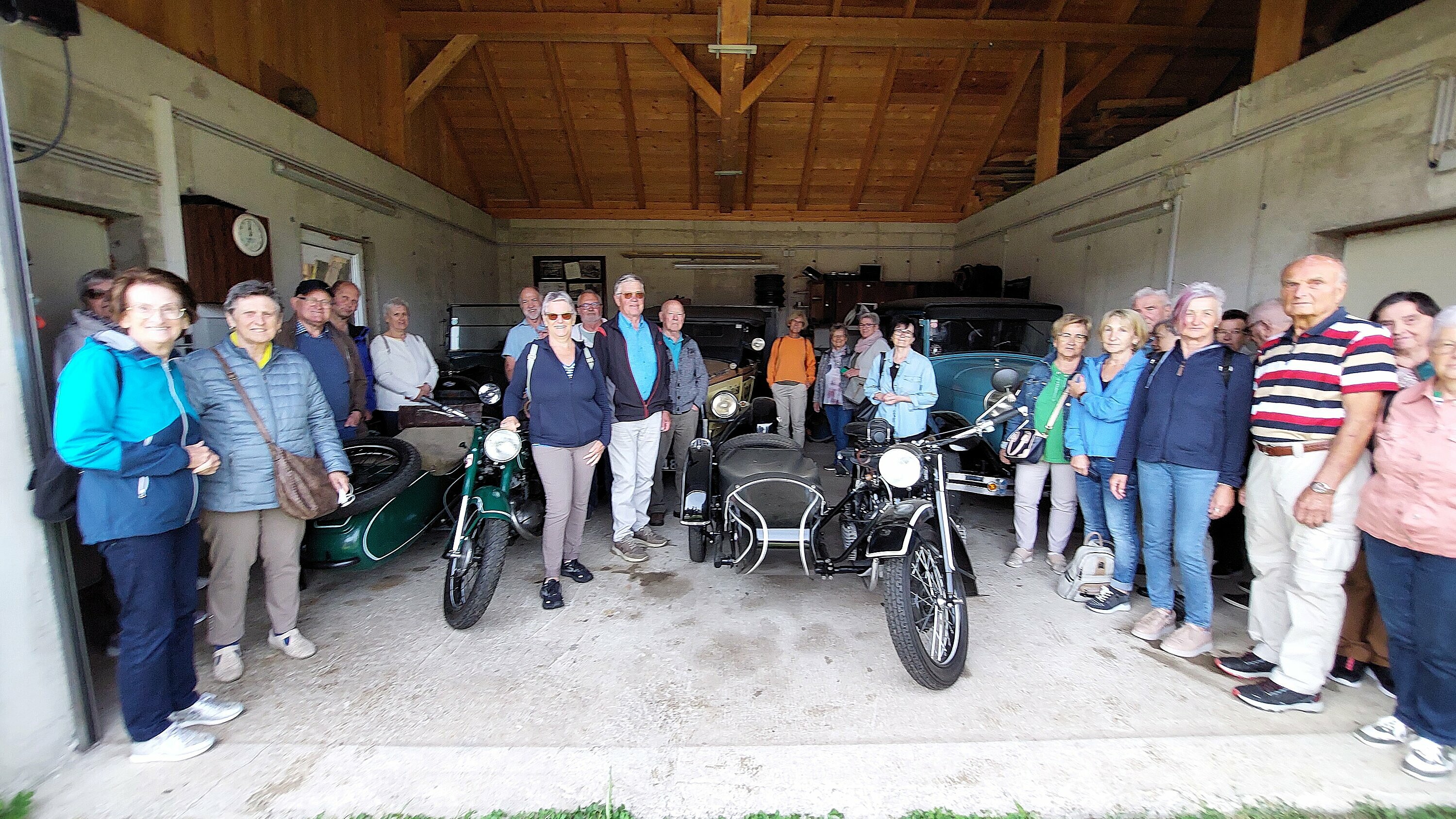 Vormittags besuchten wir das Motorradmuseum "Zündappmuseum Linden 9". Wir bestaunten die Fertigungskünste von Sammler und Bastler Erich Fragner. Er sammelt die Teile und restauriert sie in jahrelanger Arbeit zu fahrbereiten, typisierten Fahrzeugen. Erich begeisterte alle mit seiner humorigen und doch sehr fundierten Führung. So hat er für seine 178 Motorräder die Teile in der ganzen Welt zusammen gesammelt und diese dann in langjähriger Arbeit Schraube für Schraube zusammen gebaut. Sein Wissen über die zum Teil über 100 Jahre alten Motorräder ist lückenlos. Erich hat aber auch eine Menge Oldies an Autos, Fahrräder, Hausrat etc. Nach der interessanten, unterhaltsamen Führung fuhren wir weiter auf die Moseralm. Dort stärkten wir uns mit einer Kistensau. Bevor wir den Nachtisch zu uns nahmen, gingen wir eine kleine Runde auf der Alm. Der Wettergott spielte mit und so ging ein gelungener Ausflug gut zu Ende.