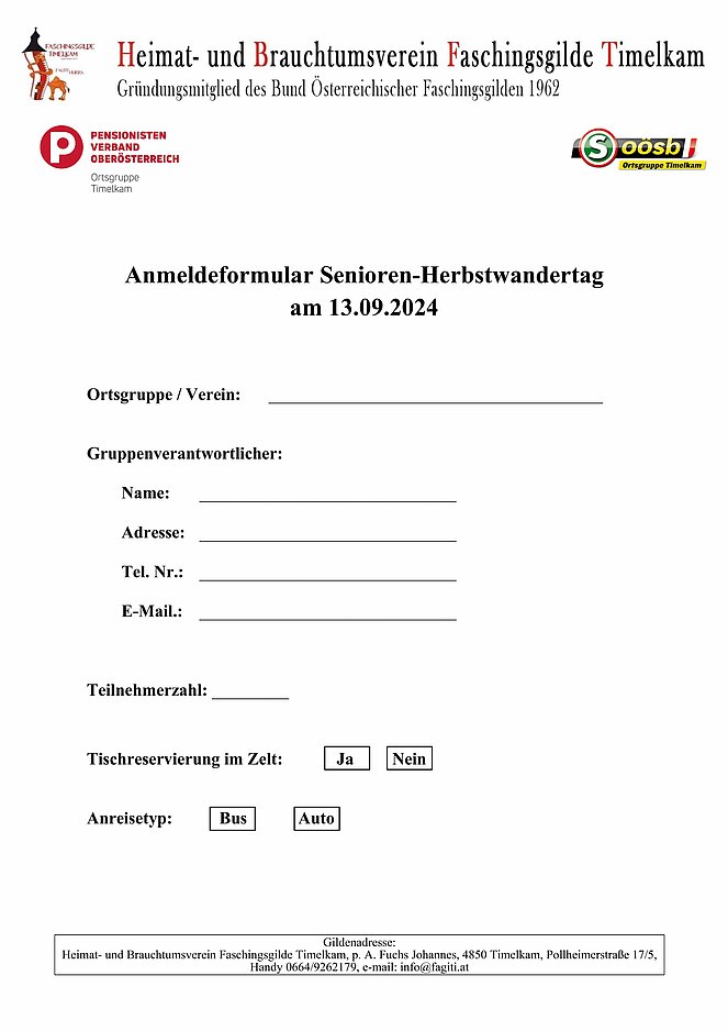 Wir würden uns sehr über Ihre Anmeldung und Teilnahme am Timelkamer Senioren-Herbstwandertag freuen!
