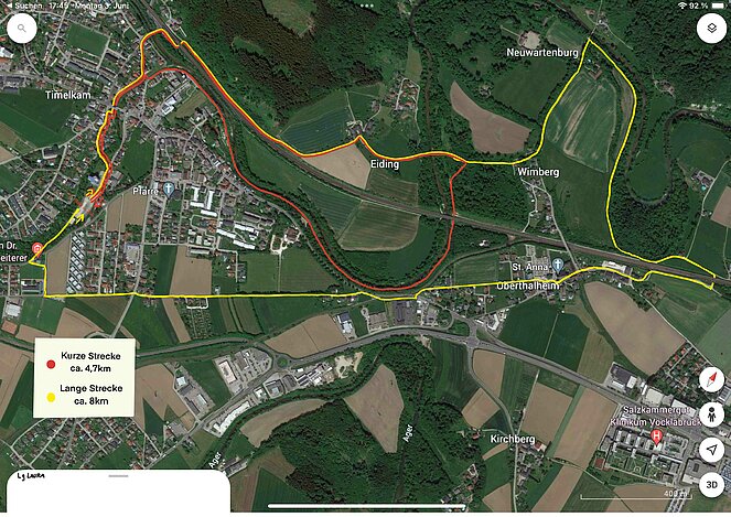 Der Start der Wanderrunde erfolgt ab 16 Uhr beim Michaeliplatz (Kirtagsgelände) in der Lerchenfeldstraße Timelkam. Wir haben für Sie 2 Wanderstrecken mit unterschiedlichen Längen entlang der Vöckla vorbereitet. Die kleinere Runde ist ca. 4,5 km und die etwas größere Runde ca. 8 km lang. Sie können auch den Verlauf der Strecke dem mitgesendeten Plan entnehmen.