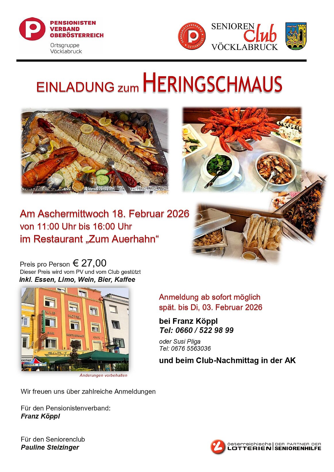 Am Aschermittwoch, 18.02.2026, laden wir euch herzlich ein, beim Auerhahn einen gemütlichen Nachmittag zu verbringen und – wie alle Jahre – das hervorragende Buffet zu genießen.