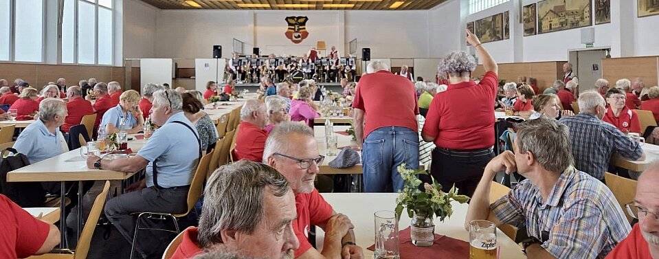 Nach den Wanderungen erwartete die Teilnehmenden ein reichhaltiger Mittagstisch im Kulturzentrum. Es gab Schopf mit Kartoffelsalat, Bratwürsten; alternativ standen Gemüselaibchen bereit. Auch Kaffee und Kuchen warteten auf die Anwesenden. Die musikalische Umrahmung begann um 11:30 Uhr und sorgte ebenfalls für eine angenehme Stimmung. Bei dieser guten Bewirtung nutzten viele die Gelegenheit, sich in geselliger Runde auszutauschen und den Vormittag in gemütlicher Atmosphäre ausklingen zu lassen. Die Verpflegung wurde von allen Seiten sehr gelobt und trug wesentlich zum gelungenen Charakter der Veranstaltung bei.