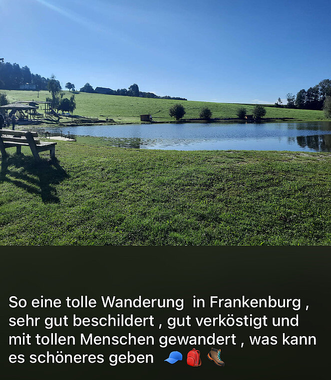 Ausgangspunkt war das Kulturzentrum Frankenburg, wo sich die Wanderfreudigen bereits ab 09:00 Uhr einfanden. Zwei Routen standen zur Auswahl: eine kürzere Runde über rund 4 Kilometer mit leichten Anstiegen und eine längere Strecke von etwa 9 Kilometern, die etwas mehr Kondition verlangte. Damit war für jede und jeden die passende Herausforderung dabei.