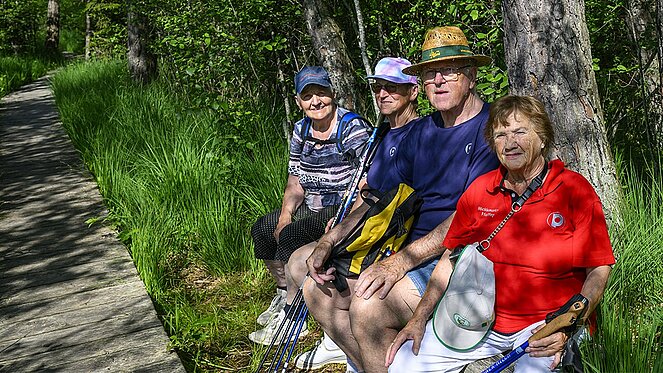 Gemeinsam fuhren wir mit dem Bus nach Hackenbuch und starteten unsere Wanderung auf einem 4 km langen, befestigten Rundweg zum Aussichtssteg im Ibmner Moor, mit beeindruckendem Blick auf das Alpenpanorama rund um den Untersberg. Entlang des Weges informierten Schautafeln über die Moorentstehung und Ressourcengewinnung.