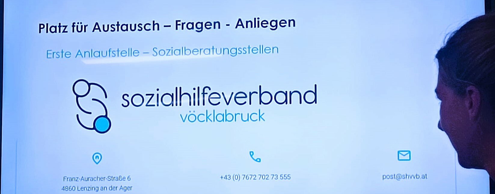 Als Referentin zum Thema Pflege konnte die diplomierte Gesundheits- und Krankenpflegerin Christine Brandner, tätig im Bereich Gemeindeschwester (Community Nursing), gewonnen werden. Sie informierte umfassend über den Sozialhilfeverband Vöcklabruck – seine Leistungen, Zuständigkeiten und Hilfsangebote. Dabei ging sie unter anderem auf praktische Fragen ein wie: Wer kann einen Antrag auf Pflegegeld stellen? Wer unterstützt mich dabei? und vieles mehr.