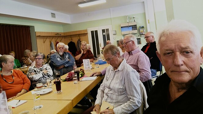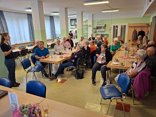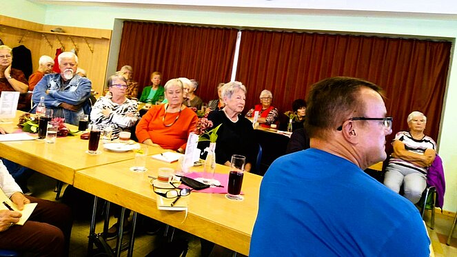 Rund 40 Teilnehmerinnen und Teilnehmer lauschten dem Vortrag aufmerksam. Es entwickelte sich ein reger Austausch mit interessanten Diskussionen, unter anderem zur aktuellen Situation in den Alten- und Pflegeheimen.