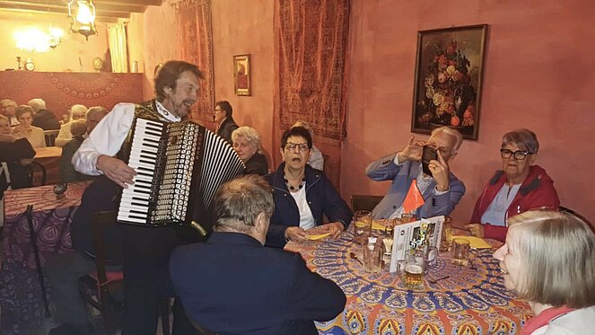 Am nächsten Morgen, nach einem reichhaltigen Frühstück, ging die Reise weiter mit einer Stadtrundfahrt durch die schöne Weinstadt Retz. Anschließend wurde die gut gelaunte Gruppe zu einer Führung durch den Erlebniskeller mit Weinverkostung erwartet.