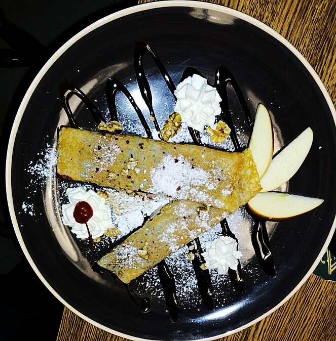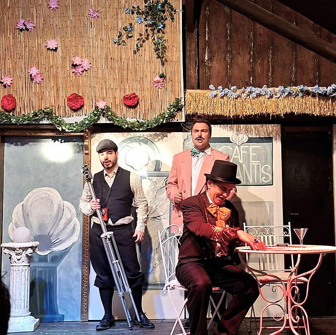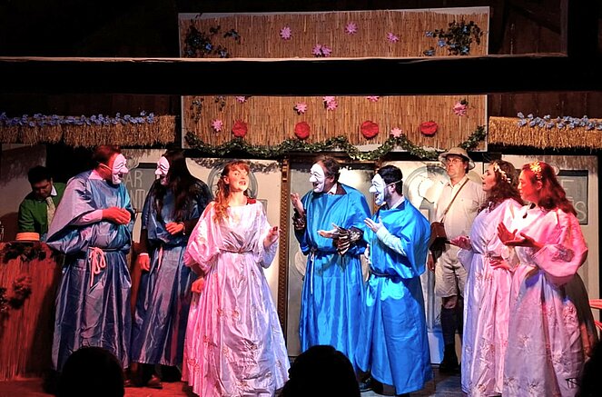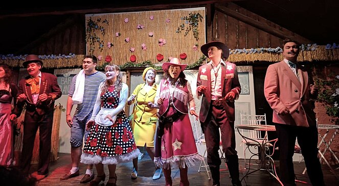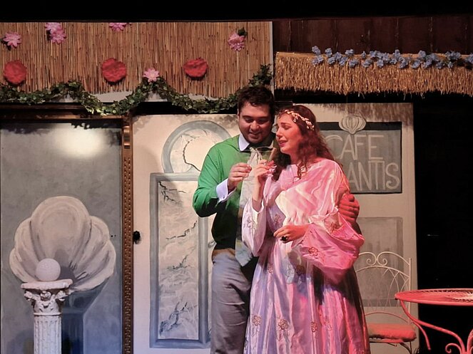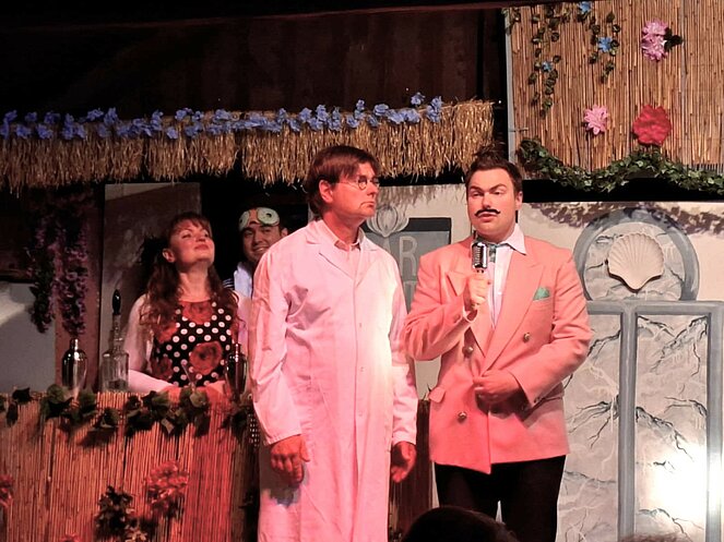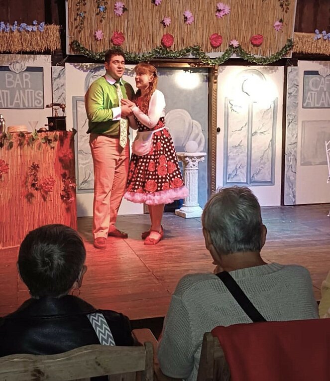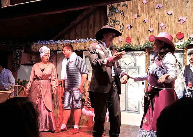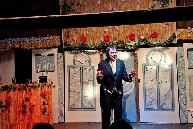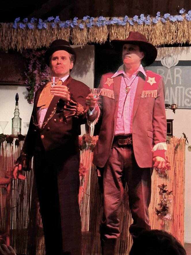 Nach einem Romantik-Menü mit musikalischer Untermalung in der historischen Theatertaverne ging es zur Theateraufführung „Sterne über Atlantis“, die sehr lustig war und für viel Gelächter sorgte.