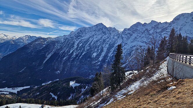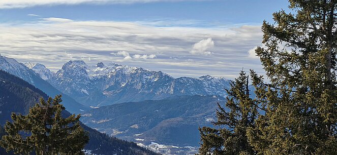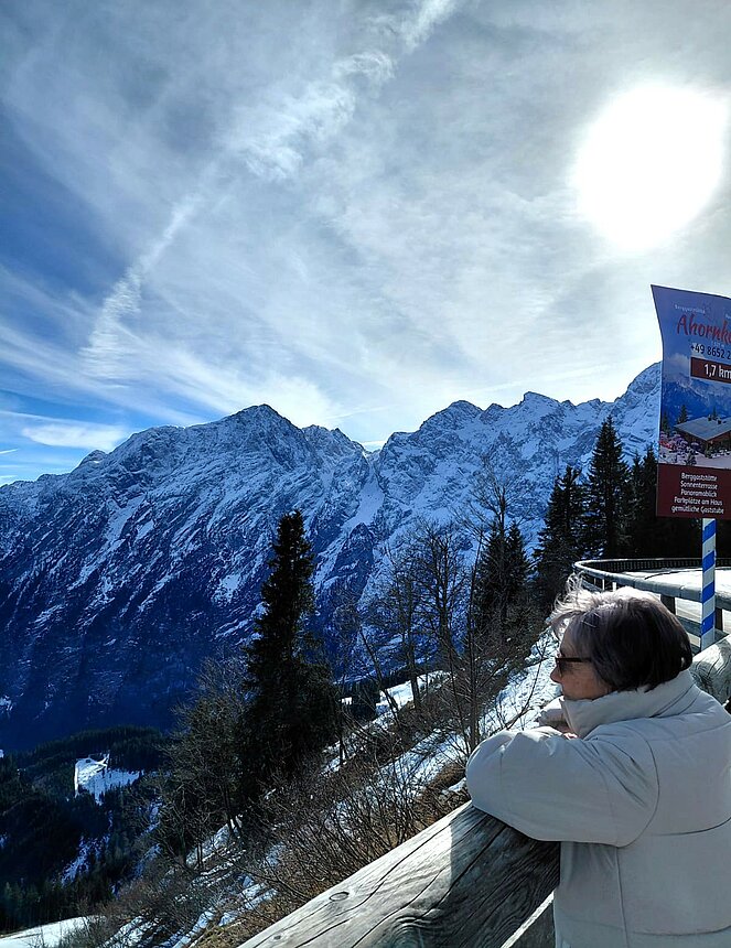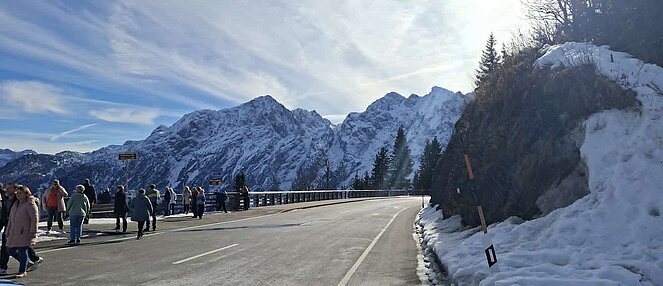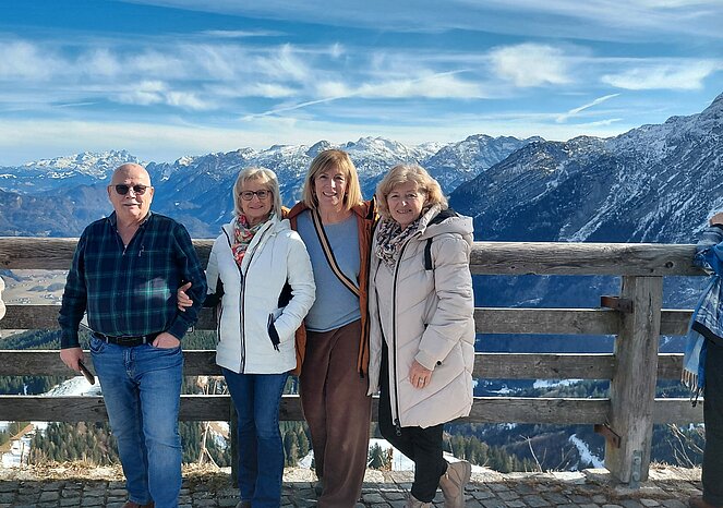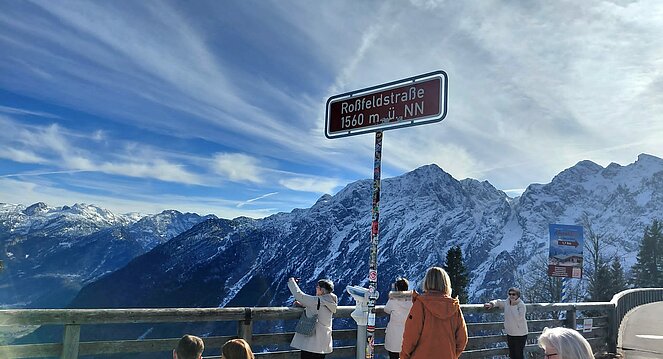 Anschließend führte uns der Ausflug in die imposante Bergwelt rund um Berchtesgaden. Über die Rossfeld Panoramastraße ging es hinauf bis auf 1.560 Meter. Entgegen aller Wetterprognosen zeigte sich das Wetter von seiner schönsten Seite und bescherte uns einen herrlichen Rundblick auf das gewaltige Bergmassiv des Hoher Göll, den Kehlstein, das Tennen- und Dachsteingebirge sowie den Untersberg. Auch das Berchtesgadener und Salzburger Land lagen uns zu Füßen.