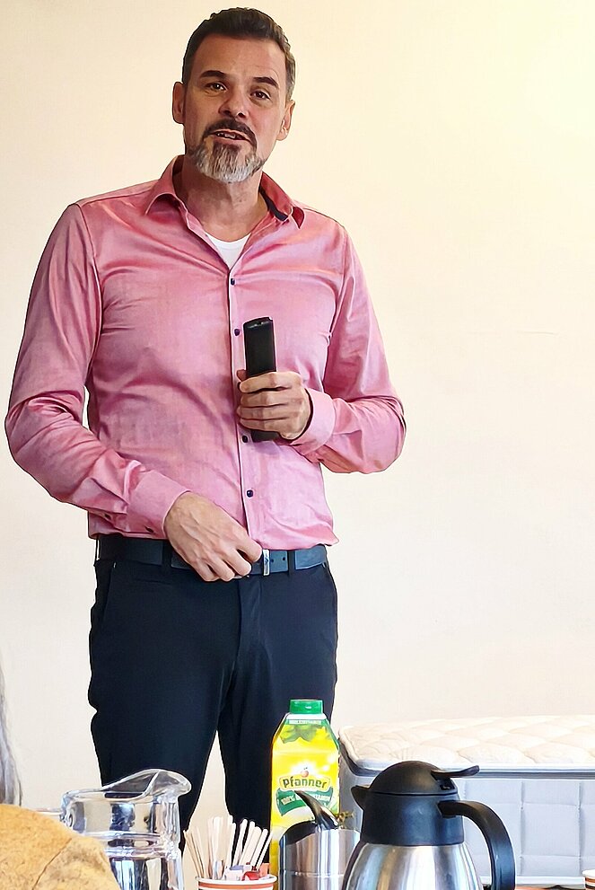 Klaus, der Chef des Hauses, stellte uns ausführlich seine hochwertigen Produkte vor.