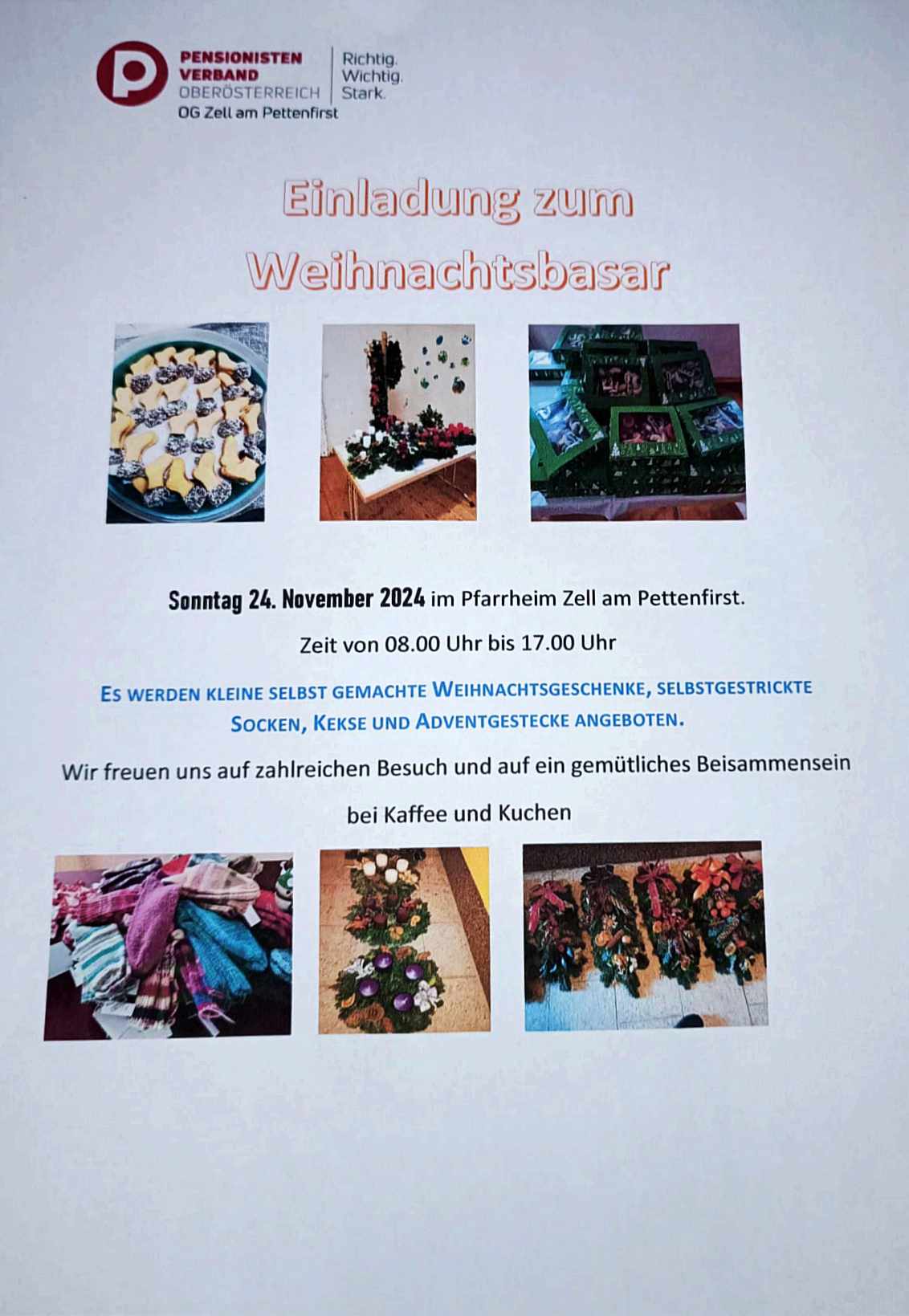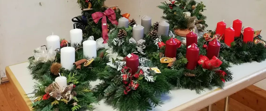 Verkauf von Adventgestecken, kleinen selbst gemachten Weihnachtsgeschenken, Keksen, Socken und auch kulinarisch wird man verwöhnt