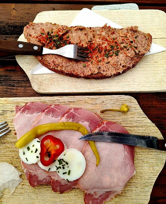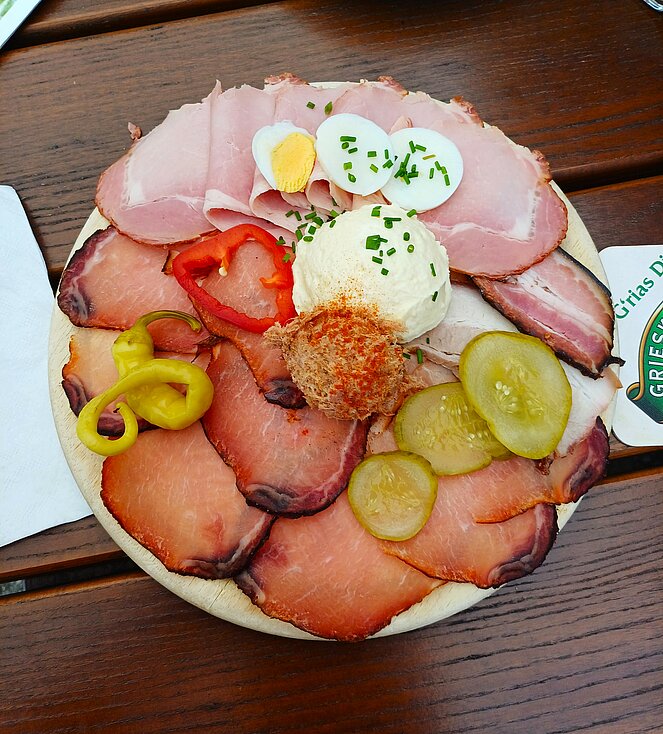 Den Abschluss des amüsanten Ausflugs machte der Besuch beim Mostheurigen Möseneder-Pramendorfer, mit herrlicher Jause, Buchteln und natürlich an guadn Most aus eigener Produktion