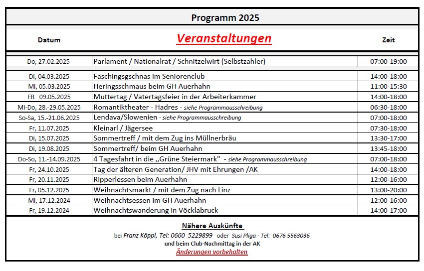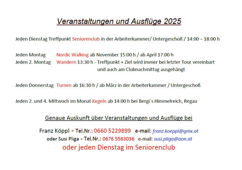 Geplante Ausflüge und Aktivitäten und aktuelle Informationen findet man auch an verschiedenen Plätzen in Vöcklabruck
