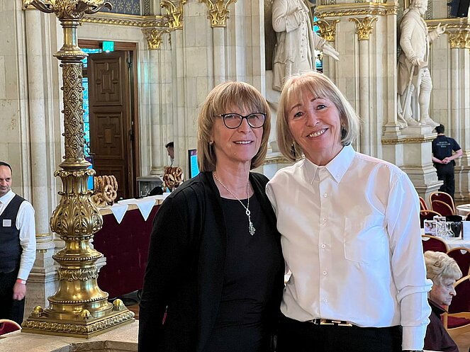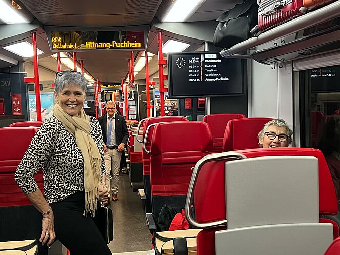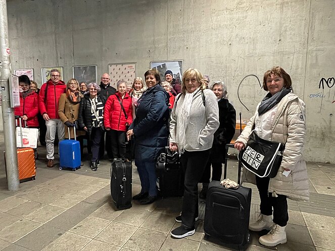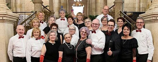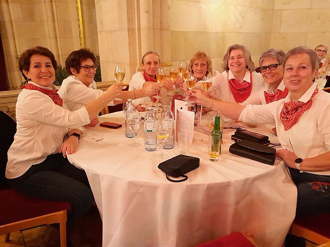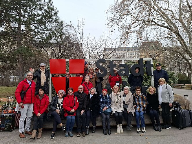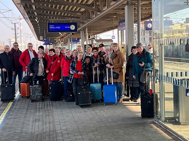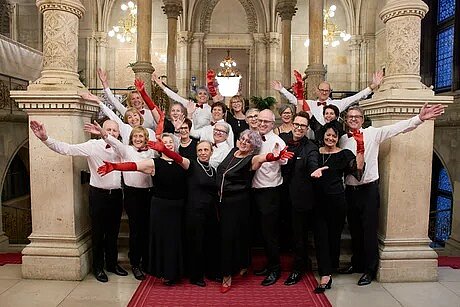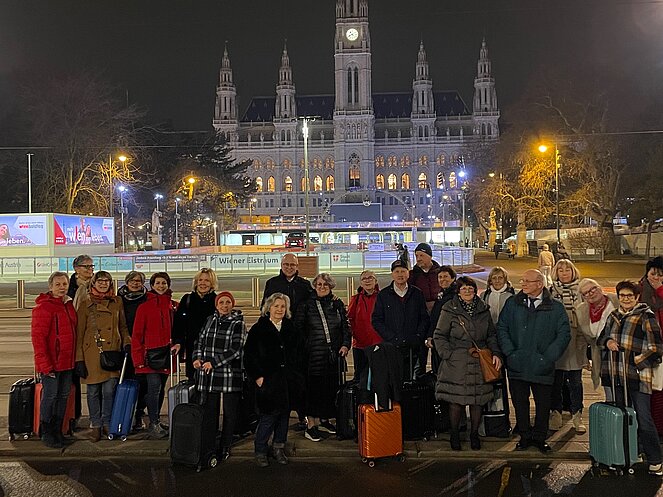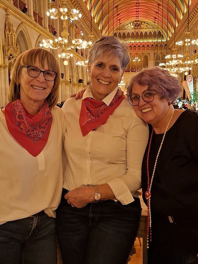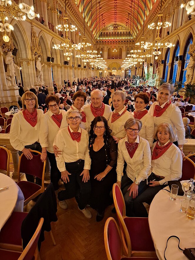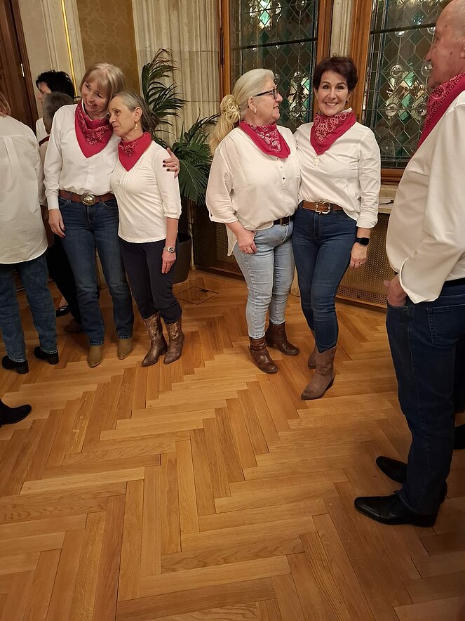 Am Sonntag, den 23. Februar 2025, startete ein unvergesslicher Tag für den PV Vöcklamarkt, als die Linedance-Gruppe mit dem Railjet nach Wien reiste. Bereits am Morgen sorgte am Wiener Hauptbahnhof eine kleine Stärkung im „Le Crobat“ für die nötige Energie, während in der Folge unterwegs ein erstes Highlight stattfand: An einer Straßenbahn-Haltestelle wurde das Geburtstagskind Christine mit einem herzlichen Ständchen geehrt, bevor dann mit der Tram die Weiterfahrt direkt zum Wiener Rathaus erfolgte. Dort begann der festliche Nachmittag mit einer letzten Probe für die bevorstehende Eröffnung, die in Zusammenarbeit mit der Tanzschule Chris stattfand.