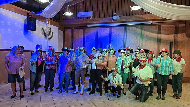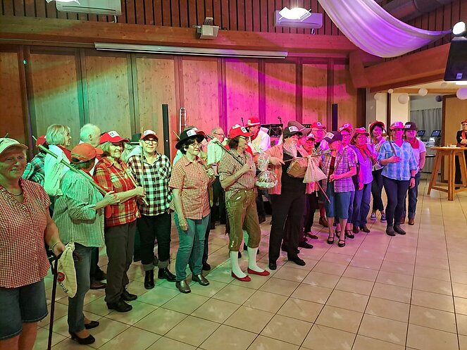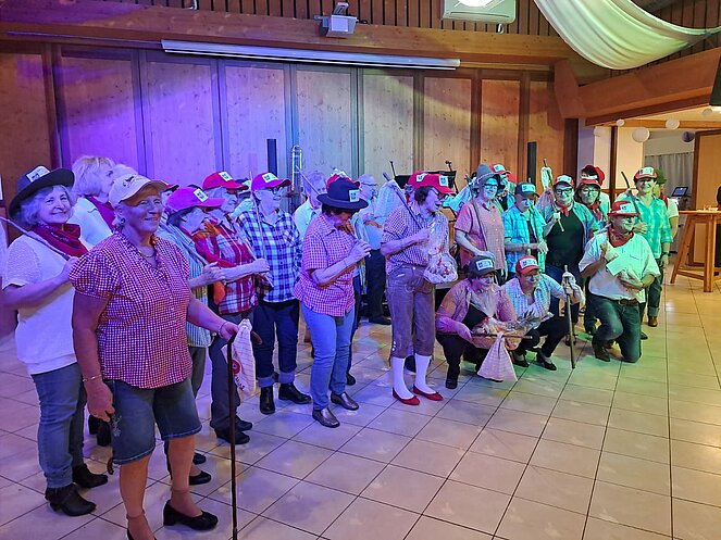 Beim Schätzspiel hat Berta Wilhelmstötter den ersten Preis eingeheimst. Bei der Gruppenwertung waren wir unangefochten vor Timelkam mit 17 Mitgliedern unschlagbar. Da die bestellten Hüte leider nicht eingetroffen sind, mussten wir für unsere Verkleidung als Wandergruppe ein wenig improvisieren. Unsere lieben Freunde aus Köstendorf, Marianne und Josef, haben uns dabei kräftig unterstützt. Beim nächsten Ball in Haag am Hausruck, am 25. Jänner werden wir dann voraussichtlich voll adjustiert sein!