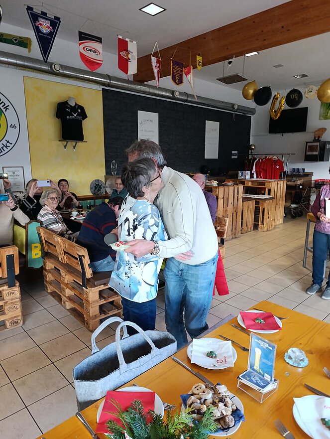 Bei unsere Christl Seidl bedankten sich alle aufrichtig. Sie erhielt eine Orchidee und einige Süßigkeiten. Es gab einen herzlichen Applaus für Christl, die sich unermüdlich für den Verein einsetzt.