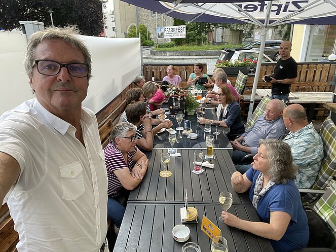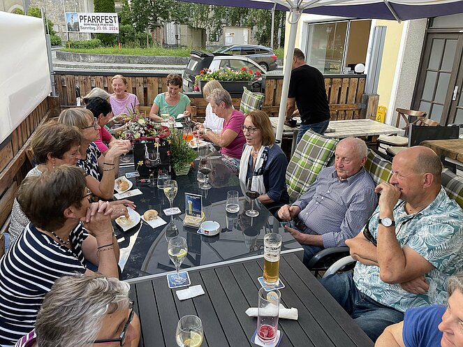 Vor der Sommerpause saßen wir bei herrlichem Sommerwetter im Gastgarten beim Roli. Eine lustige Runde war zusammengekommen und wir hielten es ganz schön lange aus.