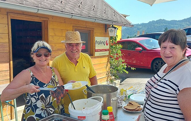 Dank der tatkräftigen Hilfe unserer "Aktiven" Mitglieder gab es ausreichend zu essen - Surschopf, Bratwürstel, Kraut, Erdäpfelsalat, Brot und natürlich eine große Auswahl an selbstgebackenen Mehlspeisen.
