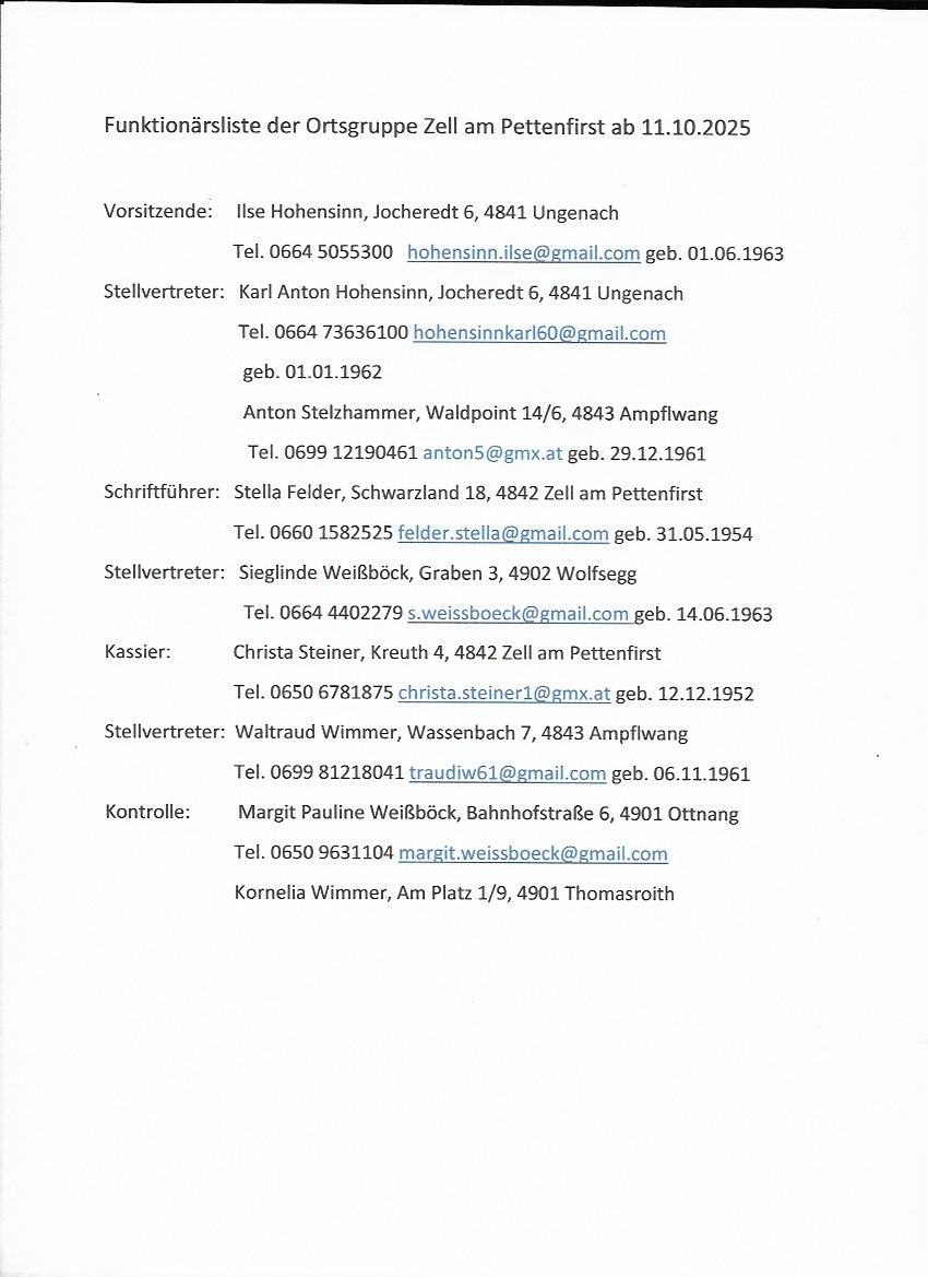 Im Anschluss fanden die Neuwahlen des Vorstandes statt. Alle bisherigen Funktionäre wurden einstimmig wiedergewählt oder neu in ihre Ämter berufen. Die Vorsitzende darf sich künftig über zwei neue Stellvertreter, Anton Stelzhammer und Karl Hohensinn, freuen.