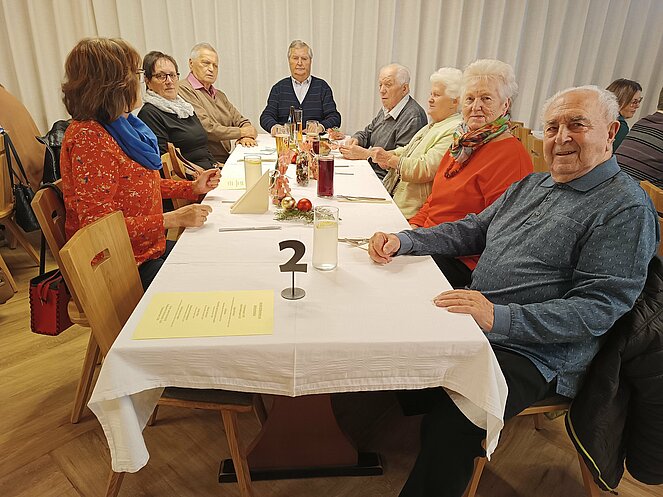 Die Vorsitzende gab einen kurzen Rückblick über die letzte Veranstaltung, verlas einige Gedichte und übergab den Ehrengästen das Wort für einige Grußworte. Jedes anwesende Mitglied erhielt einen Gutschein über € 15,--. der im Gasthaus eingelöst wurde. Weiters erhielten alle Mitglieder ein persönliches Geschenk von Ilse Hohensinn. Ein Sackerl mit selbstgemachten Keksen, sowie einen Schoko Engerl. Rauscher Helga brachte einen Christstollen, der vorzüglich schmeckte mit.