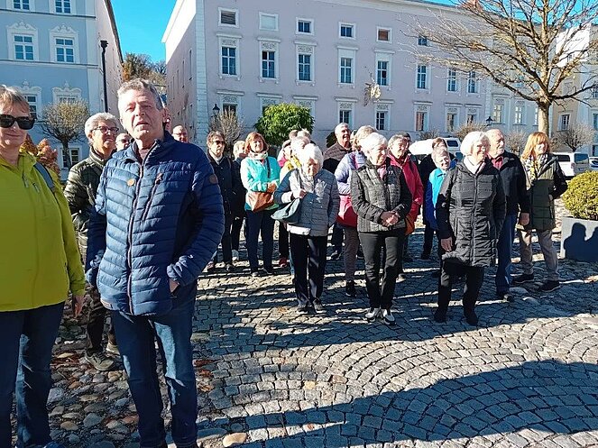 Mit ortskundiger Führung wurde an dem strahlend blauen Herbsttag der schöne Stadtplatz und besondere Bauwerke besucht.