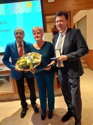 Bürgermeister Baumgartner hat Vors. Stv. lIse Rader für ihr langes Wirken zum Ehrenamt mit dem silbernen Ehrenzeichen der Marktgemeinde Buchkirchen ausgezeichnet.