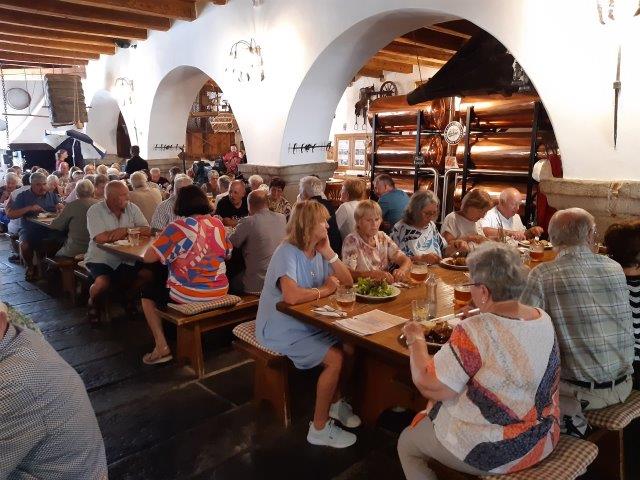 Am Weg dorthin stärkten wir uns im unteren Mühlviertel mit einer Knackerjause. Unser Ziel war Krumau mit Stadtführung. In zwei Gruppen konnten wir bei einem geführten Rundgang mehr über die Entwicklung dieser schönen Altstadt erfahren. In der urigen Krumauer Mühle, direkt an der Moldau gelegen, kehrten wir zum Mittagstisch ein.