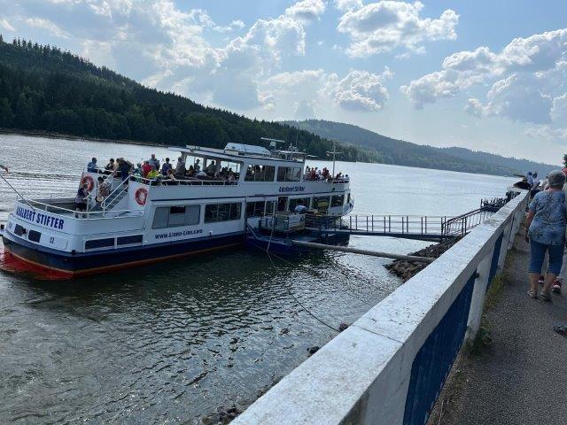 Am Nachmittag, mit Abfahrt von Lipno, war bei einer zweistündigen erholsamen Schiffsrundfahrt am Moldaustausee, Schauen und Plaudern beim gemütlichen Dahingleiten angesagt.