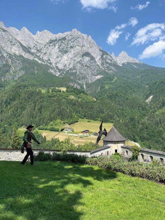 Am Donnerstag 16. Juni, um 7 Uhr früh, an einem sonnigen Morgen, startete der Bus mit 66 Pensionisten zur 3. Ausfahrt, nach Hohenwerfen. Die zweitgrößte Burg im Land Salzburg war unser Ziel. Dort angekommen und vom Lift nach oben transportiert wurden wir durch eine kundige Führerin durch die Räume geleitet. Schauen und staunen war am Vormittag wegen der prächtigen und auch schaurigen Räumlichkeiten angesagt. Nach dem Mittagstisch in der Burgschenke konnten die Ausstellungen genauer besichtigt werden. Zum Abschluss unseres Besuches sahen wir noch zu, wie pfeilschnell Falken auf der Jagd und Adler majestätisch den Luftraum nützen. Ein schöner, gemeinsam verbrachter Tag, der nach lange in Erinnerung bleiben wird.