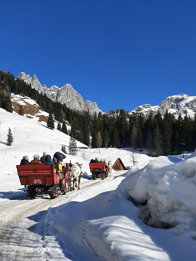Pferdeschlittenfahrt auf die Unterhofalm.