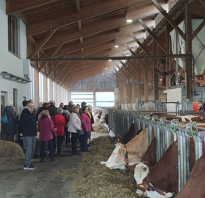 48 Mitglieder machten sich auf den Weg zum Toblerhof in Lambach. Dort erhielten wir eine interessante Führung durch die Stallungen. Wir erfuhren viel über die Tierhaltung, Milchproduktion und die hauseigene Käserei. Nach der Führung stärkten wir uns bei einer guten Jause mit hofeigenen Spezialitäten. Viele nutzten anschließend die Gelegenheit im Hofladen einzukaufen.
