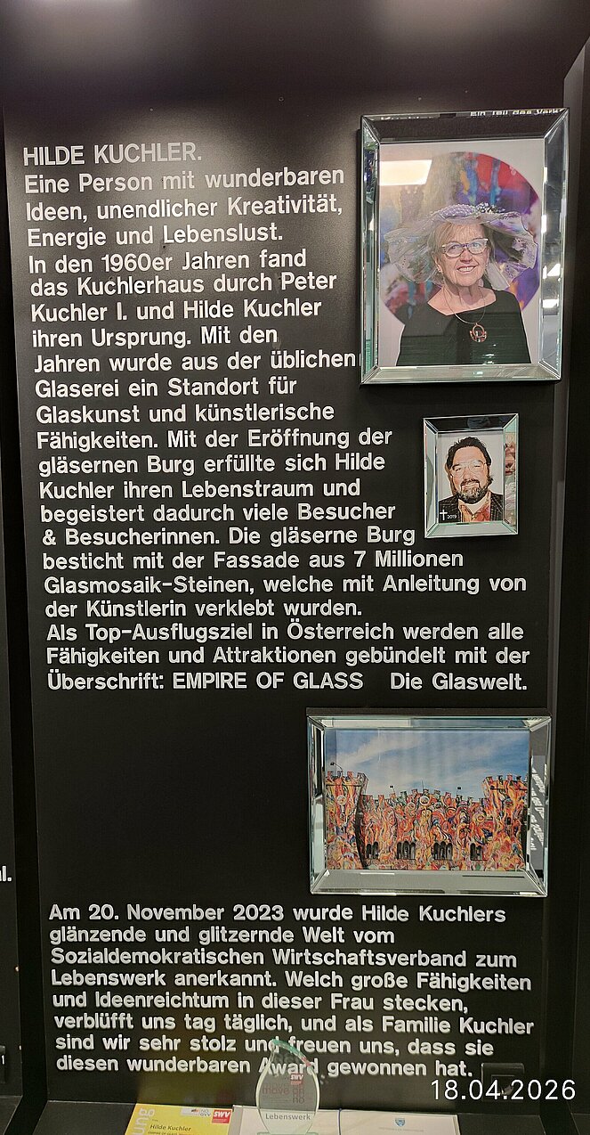Am zweiten Tag führte uns unser Ausflug in die faszinierende Glaswelt Weigelsdorf. Dort bestaunten wir eindrucksvolle Themenwelten und erhielten interessante Einblicke in die Kunst der Glasherstellung. Besonders die einzigartige Fassade mit ihren selbstgebrannten Mosaiksteinchen zog alle Blicke auf sich.