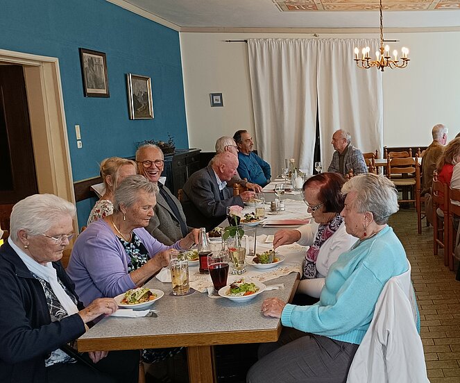 Nach dem gemeinsamen Gruppenfoto ging es in den gemütlichen Teil über – bei Speis und Trank und netten Gesprächen.