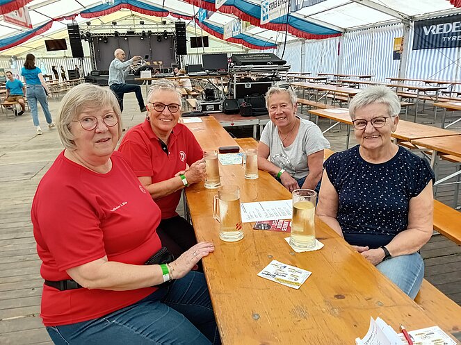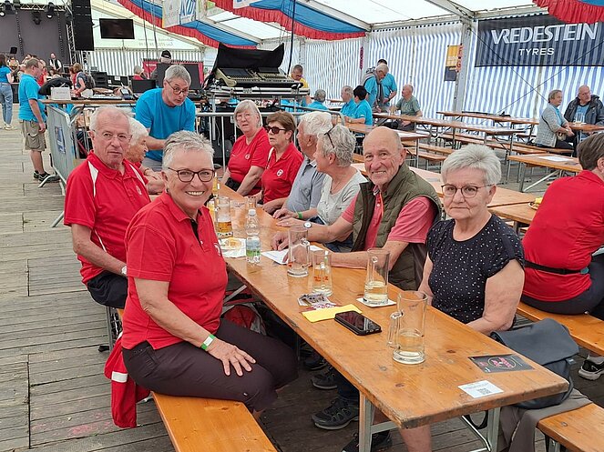Somit saßen sie schon lange bei einem kühlen Getränk bis die Herren ankamen.