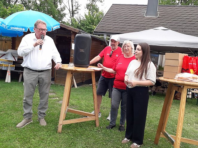 Zur Siegerehrung kam auch Bürgerm. Stockinger und überreichte den von ihm gespendeten Wein.
