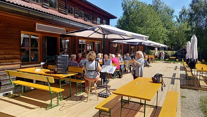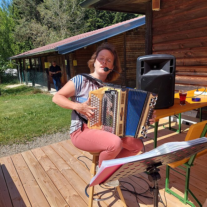 Auf der Sonnenterrasse sorgte eine Ziehharmonikaspielerin für gute Unterhaltung in lustiger Runde.