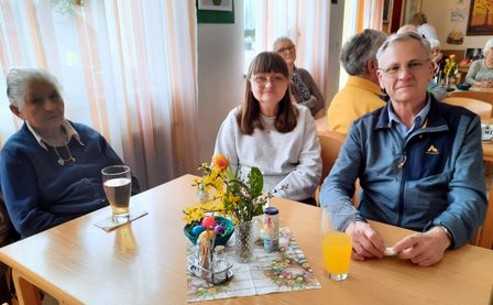 Wir hatten einen Vortrag von Fa. REHA MED. Der Referent erklärte uns seine mitgebrachten Utensilien, z. B. Topper für sehr guten Schlaf, Infrarot Wärmematte und Massage IPad welche für verschiedene Therapieformen angewandt werden. Cremes und Kräuteröle - für vor und nach dem Sport - zum Erfrischen oder auch bei Müdigkeit. Wir konnten alles testen und ausprobieren. Es war der Pensionisten-Nachmittag im März, somit kam schon der Osterhase und hat uns bunte Eier vorbeigebracht. Es wurde gleich zum lustigen Eierpecken eingeladen. Am Ende war es wie immer ein gemütlicher Nachmittag.