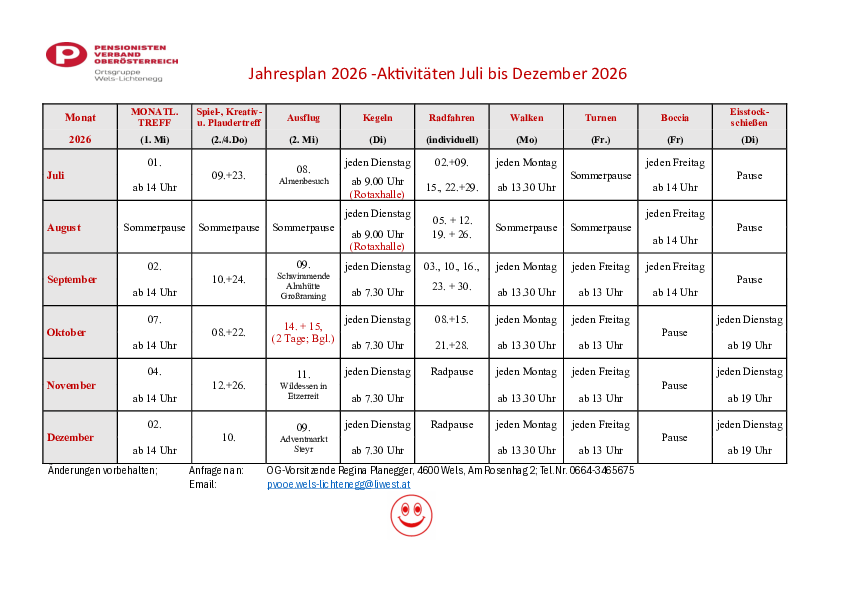Aktuelles aus der Ortsgruppe Wels-Lichtenegg
