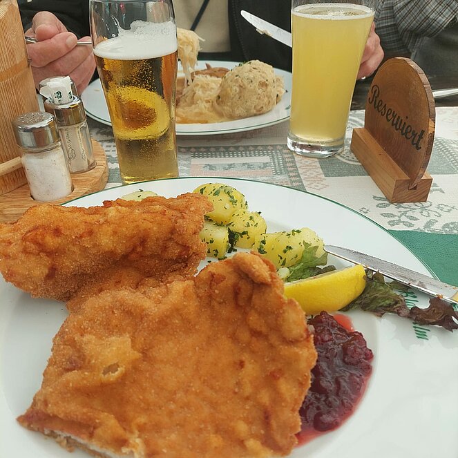 Bei herrlichem Wetter auf der Sonnenterrasse des Wirtshauses Blaa-Alm konnten wir die Köstlichkeiten aus der Almküche so richtig genießen.
