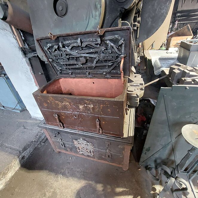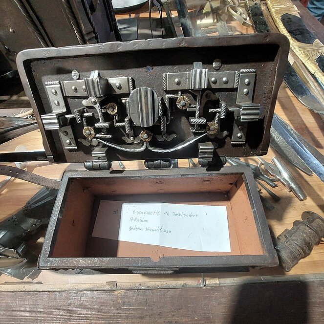In der seit 200 Jahren im Familienbesitz befindlichen Kunstschmiede werden in Handarbeit Waffen, Truhen und auch die Rüstungen für die Schweizer Garde hergestellt.