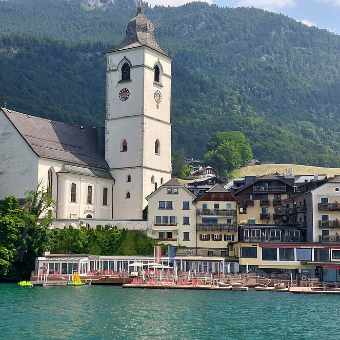 Auf der Schifffahrt von St. Wolfgang nach ST. Gilgen erblickten wir das bekannte Hotel "Im weißen Rössl " und so manche nostalgische Erinnerungen an den bekannten Film mit Peter Alexander und Waltraud Haas wurden wach.