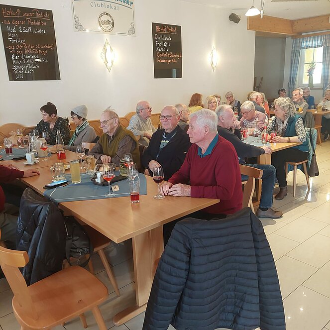 Anschließend fuhren wir zum Mostheurigen "Buchna-Einkehr". Es erwartete uns ein vielfältiges, schmackhaftes Büfett und allerlei selbstgebackenes Süsses, auch zum Mitnehmen. Verschiedene Mostsorten und Schnäpse wurden zur Kostprobe aufgetischt. Ein Beisammensein in lustiger Runde, hervorgerufen durch die vielen Kostproben, ließ den Ausflug ,humorvoll" ausklingen.