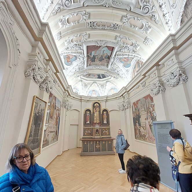 Bei einer spannenden Führung konnte man die frühromanischen Fresken, das Refektorium, einst Speisesaal der Mönche, und das Barocktheater bewundern.