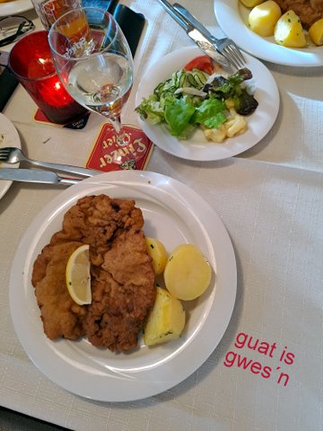 Im Anschluss daran wurden alle zu Schnitzel, Schweinsbraten oder Fisch eingeladen. Das Essen schmeckte und war für manche sogar viel zu viel, sodass mit dem Silberpapier der Rest mit nach Hause genommen wurde.