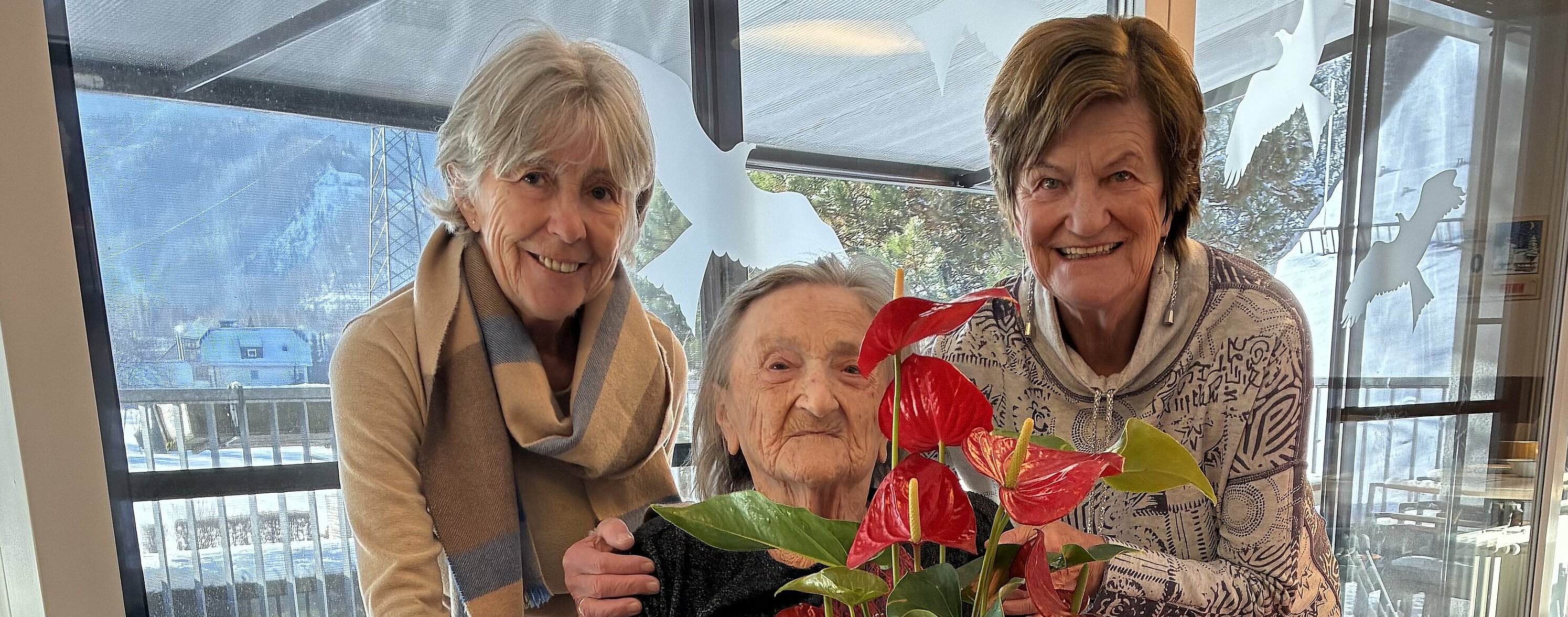 Zu diesem ganz besonderen Jubiläum durften wir Frau Schrattenecker im Seniorenhaus Niederalm besuchen und gemeinsam mit ihr feiern. Unsere Lingarda ist mit ihren 100 Jahren noch erstaunlich fit und geistig sehr präsent. Mit Freude erinnerte sie sich daran, wie sie uns vor einigen Jahren bei unseren Weihnachtsfeiern lustige Weihnachtsg’schichtl’n sowie besinnliche Weihnachtsgedichte vorgelesen hat.