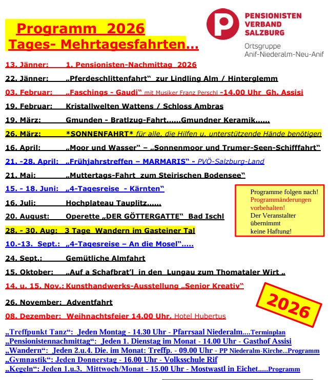 Hier findet ihr alle Termine aus unserem Wander-, Ausflugs- und Reiseprogramm zum Nachlesen und downloaden.