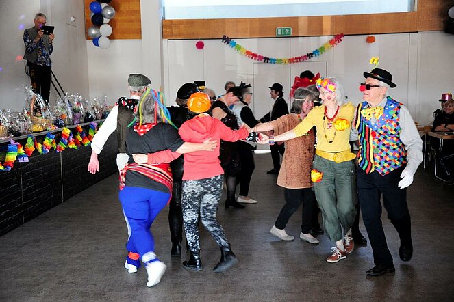 Eine besondere Attraktion war diesmal die Tanzeinlage von 8 Paaren aus unserer Gruppe „Tanzen ab der Lebensmitte“. Ihre Darbietung war so lustig und ansteckend, dass gleich viele mitgetanzt haben.