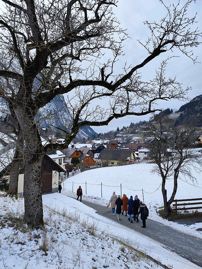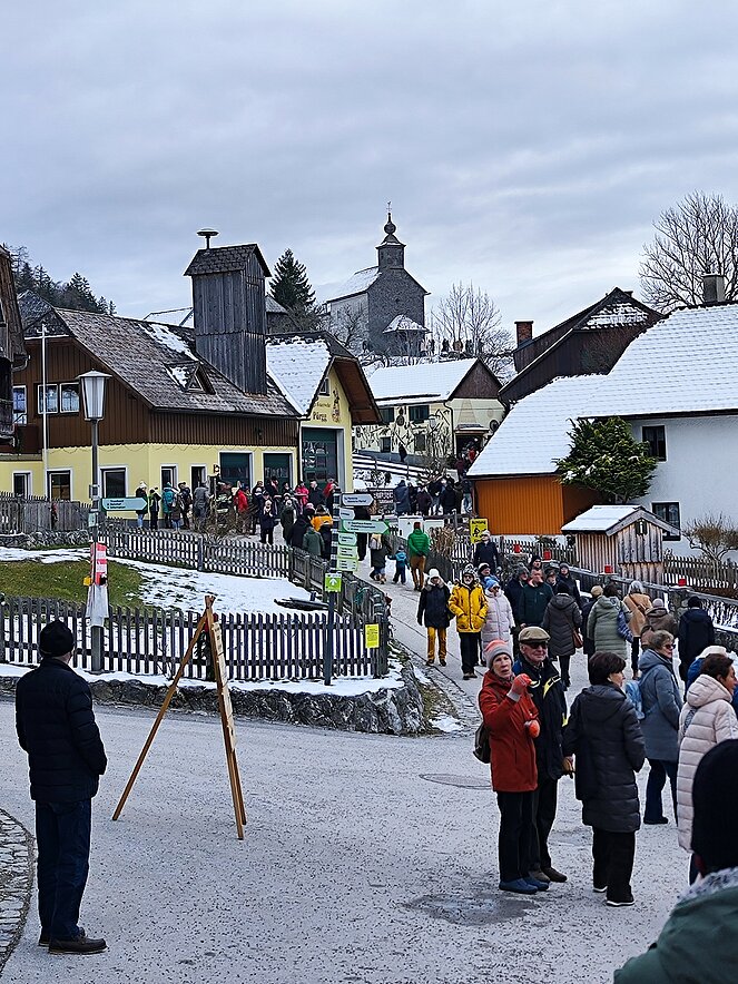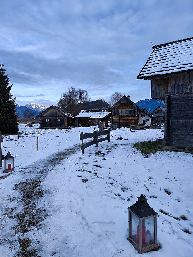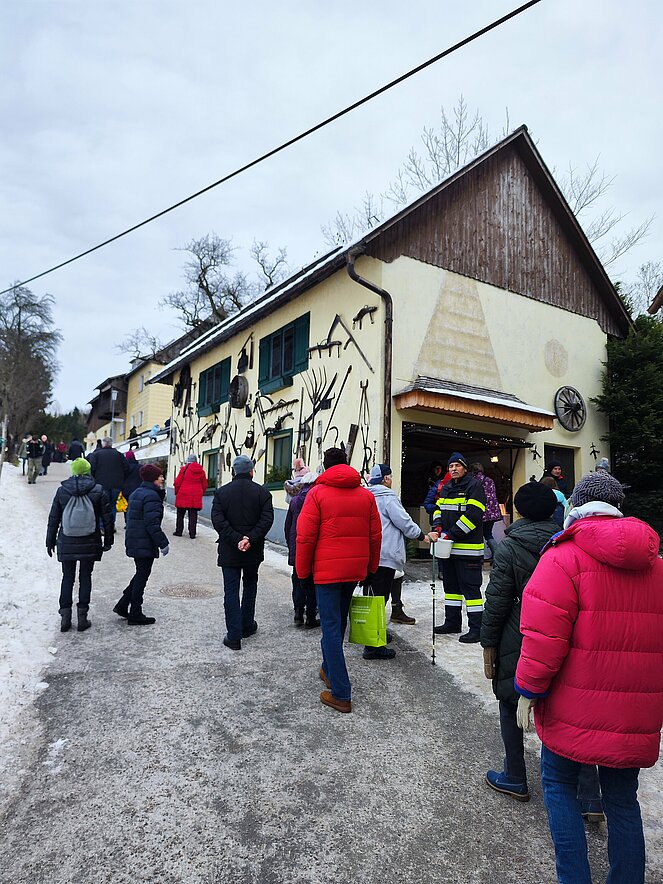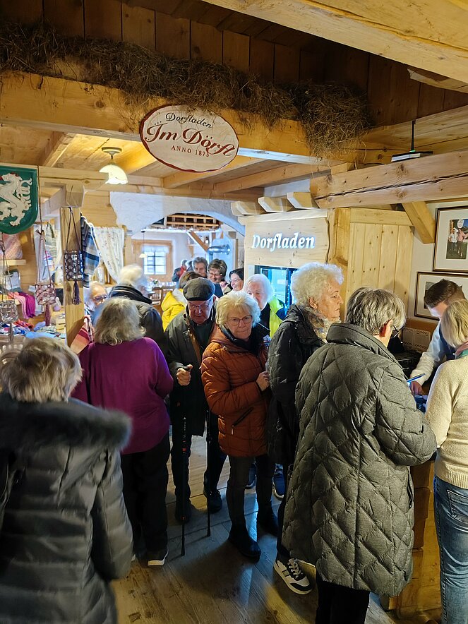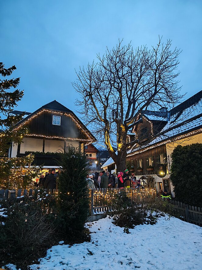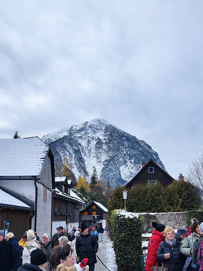 Der Adventausflug 2025 führte uns mit zwei Bussen in die Steiermark. Über die Tauernautobahn ging es durch das Ennstal nach Irdning, wo wir im “Wirtshaus im Dörfl” das Mittagessen einnahmen. Weiter ging es dann nach Pürgg, einem kleinen Dorf hoch über dem Ennstal. Der malerische Ort gegenüber dem mächtigen Grimming wurde einst von Peter Rosegger liebevoll “das Kripperl der Steiermark” bezeichnet. In den zahlreichen Ställen, Garagen und Scheunen wurde Handwerkskunst aus Holz, Wolle, Wachs oder Ton angeboten. Das eine oder andere Häferl Glühwein oder Glühmost wurde natürlich auch verkostet. Da dieser Adventmarkt nur an zwei Adventwochenenden stattfindet war der Besucherandrang entsprechend hoch. Die Dämmerung wurde durch tausende Lichter in den Gässchen an Gebäuden und Bäumen erhellt.