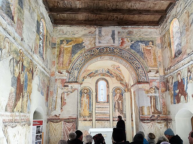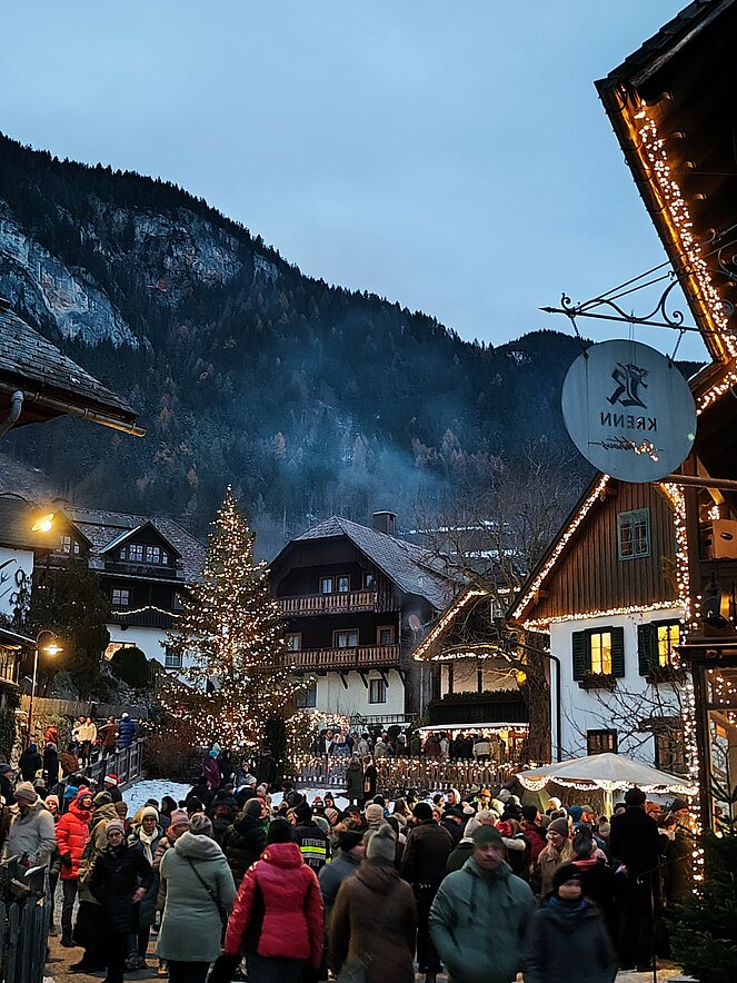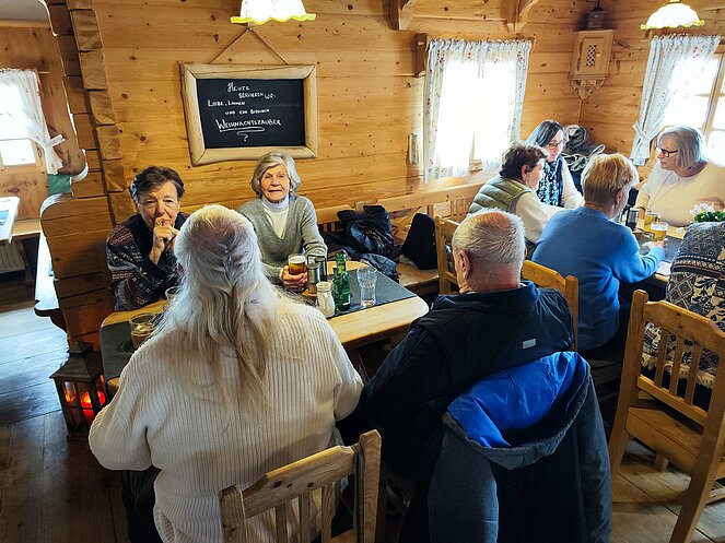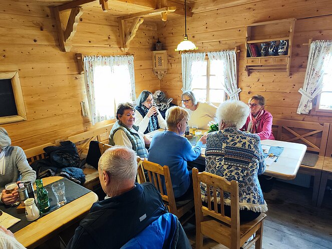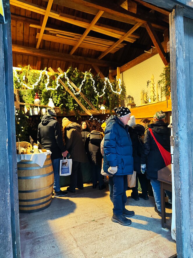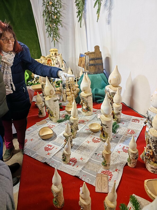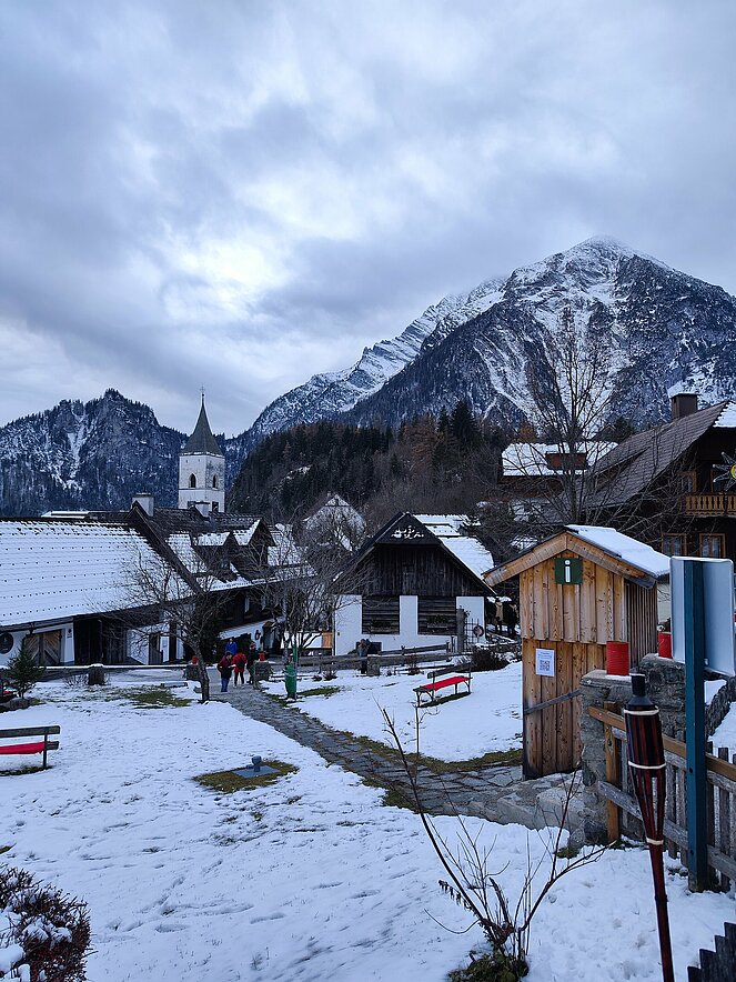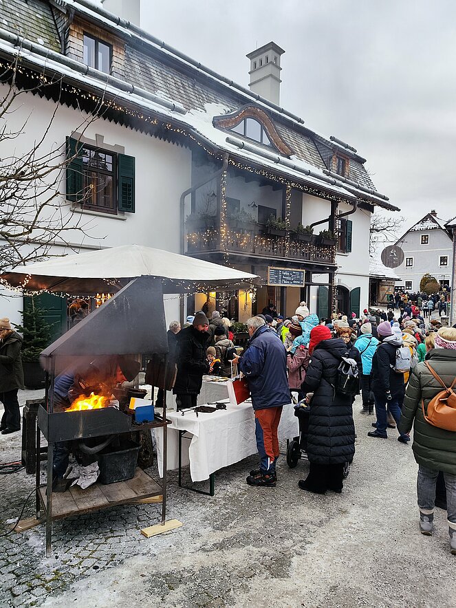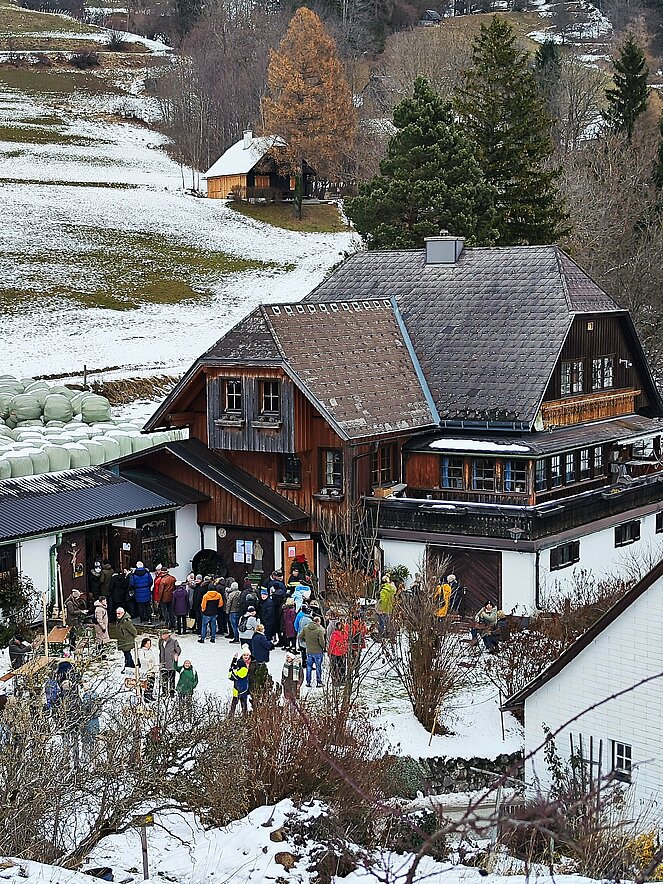 Der Adventausflug 2025 führte uns mit zwei Bussen in die Steiermark. Über die Tauernautobahn ging es durch das Ennstal nach Irdning, wo wir im “Wirtshaus im Dörfl” das Mittagessen einnahmen. Weiter ging es dann nach Pürgg, einem kleinen Dorf hoch über dem Ennstal. Der malerische Ort gegenüber dem mächtigen Grimming wurde einst von Peter Rosegger liebevoll “das Kripperl der Steiermark” bezeichnet. In den zahlreichen Ställen, Garagen und Scheunen wurde Handwerkskunst aus Holz, Wolle, Wachs oder Ton angeboten. Das eine oder andere Häferl Glühwein oder Glühmost wurde natürlich auch verkostet. Da dieser Adventmarkt nur an zwei Adventwochenenden stattfindet war der Besucherandrang entsprechend hoch. Die Dämmerung wurde durch tausende Lichter in den Gässchen an Gebäuden und Bäumen erhellt.