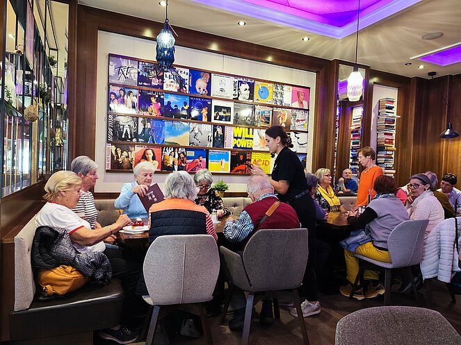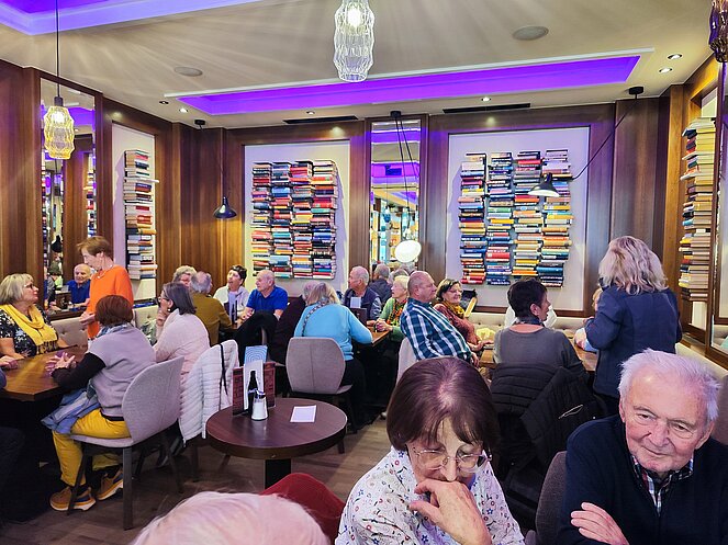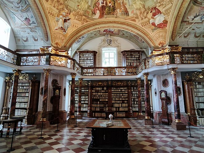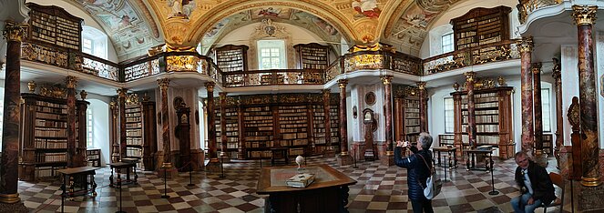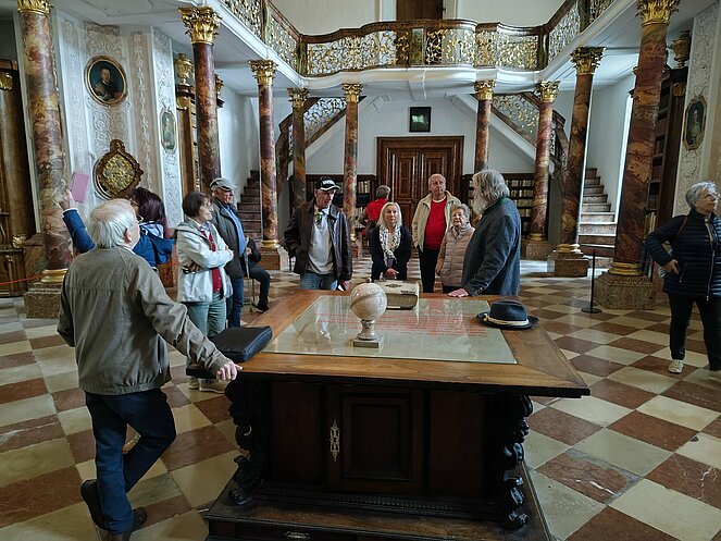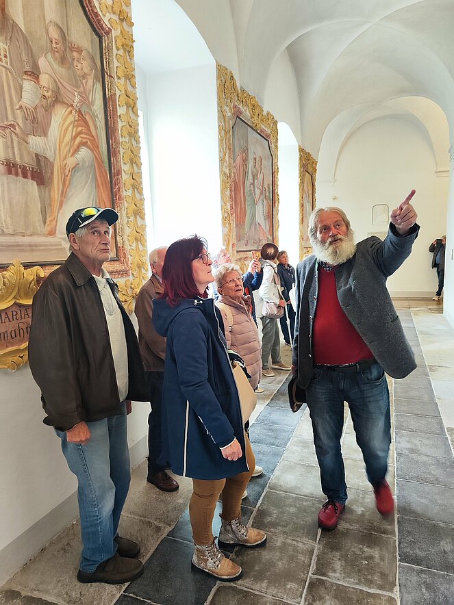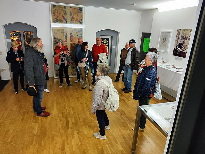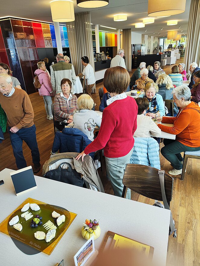 Die diesjährige Fahrt ins Blaue führte uns mit zwei Bussen der Firma Schwab nach Schlierbach. Im heutigen Zisterzienserkloster Stift Schlierbach sind neben der Kunst- und Kulturpflege auch wichtige wirtschaftliche Einrichtungen wie etwa die Glasmalerei oder die Bio-Käserei. In mehreren Gruppen konnten wir die verschiedenen Sehenswürdigkeiten besichtigen. Die hölzerne Schlierbacher Madonna entstand um 1320. Die Bibliothek, der Bernardisaal und die barocke Stiftskirche sind sehr sehenswert. Die äußerst interessante Führung vermittelte uns auch Einblicke über die Entstehung der Glasmalerei im Stift. Zu guter Letzt gab es noch eine Verkostung sämtlicher Bio-Käseprodukte. In Seewalchen am Attersee besuchten wir das See-Cafe und genossen Kaffee und Kuchen.